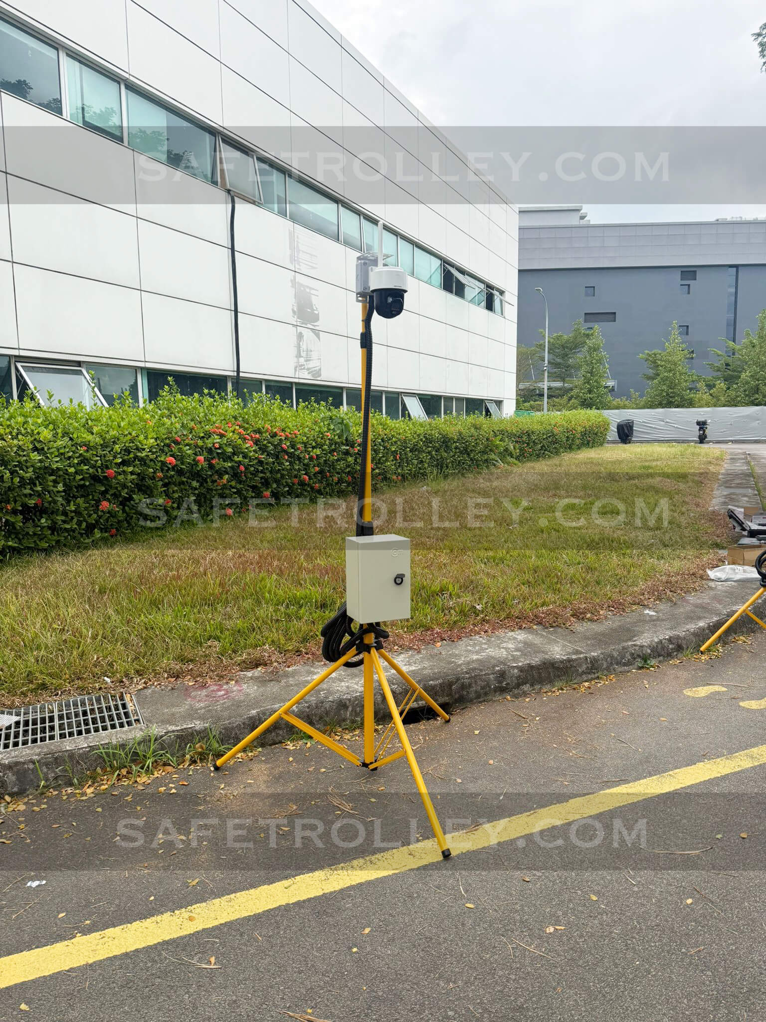 Our solar-powered CCTV system is a cost-effective and innovative solution, available on mobile enclosure carts or standing poles, designed to meet the video surveillance system (VSS) requirements set by Singapore’s Ministry of Manpower (MOM) for the construction sector.